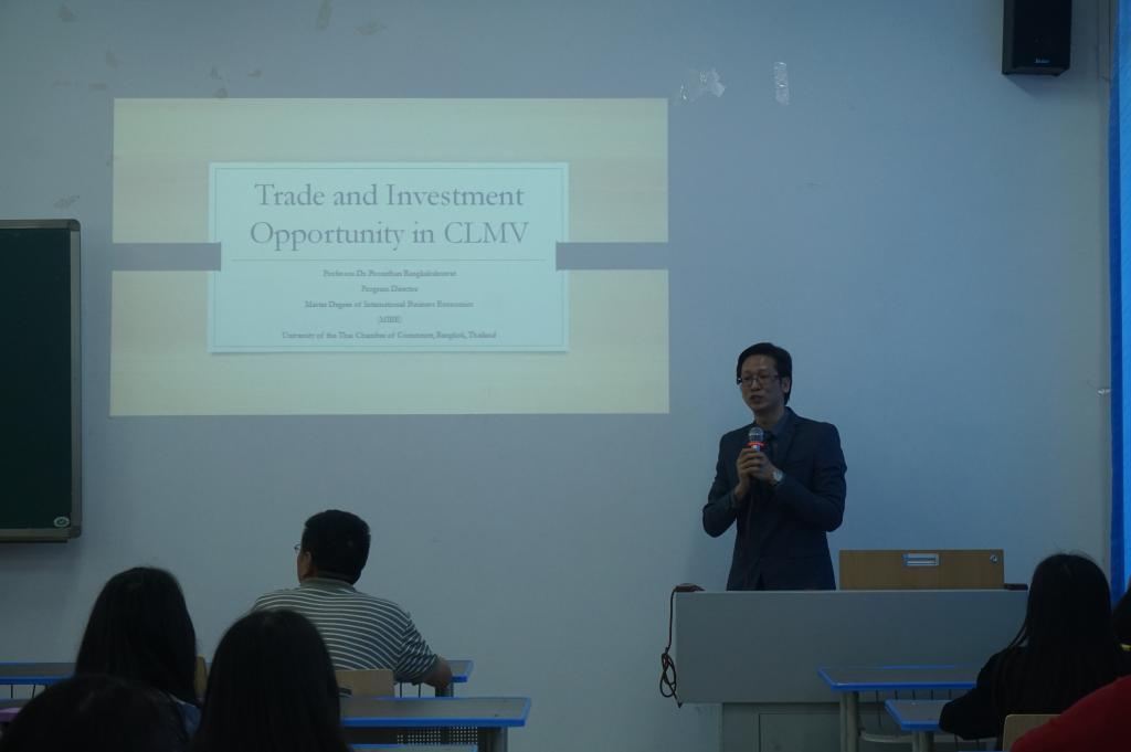 颇袒教授围绕“澜沧江-湄公河沿线 CLMV 四国(柬埔寨,老挝,缅甸,越南)的经贸往来与投资机会”的主题,对 CLMV 各国的投资宏观环境、比较优势、经济差异、直接投资的决定因素、经济复苏与发展趋势、经贸往来及投资契机展开分析与阐释。他强调CLMV各国具有地理位置优越、自然资源丰富、劳动力市场大、政府支持政策强度大等优势,外来投资将会获得巨大收益。