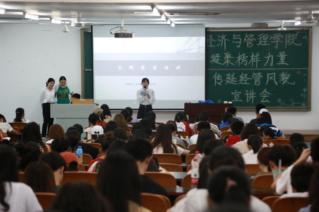 宣讲会中,文明寝室惠风B4045和雅风B2105以“改变自己的思想,就终究会改变自己的命运”为主题分享了寝室成员追求进步,开拓思维的成长历程。三好学生汪廷英、毛雪莲、杨益娟都分享了自己大学期间的奋斗经历,从每天思考、反省,不断完善自我,充实生活等方面诠释了勤奋的意义。优秀学生干部刘宇婷、肖婷婷则从加强学习、敢于担当、以身作则、发挥带头作用以及积极为老师和同学服务等方面分享了作为学生干部的成长经历。