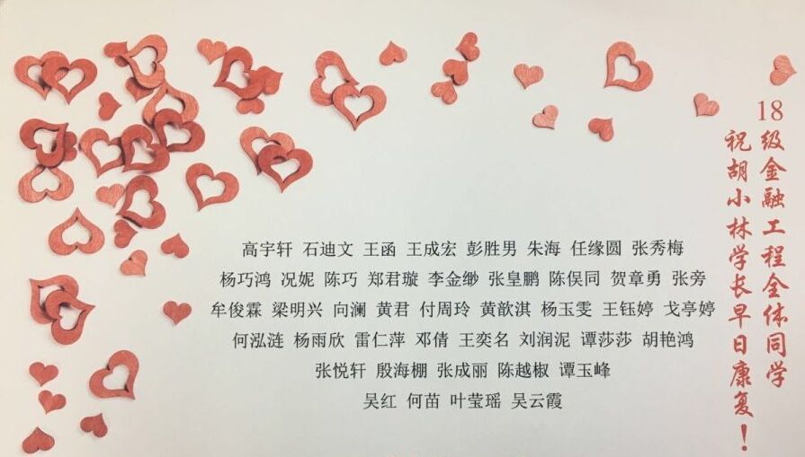 各划拨1万元专项经费用于救助胡小林同学。同时,帮助胡小林的活动得到了全院乃至全校师生的广泛响应,师生通过“线上”水滴筹自愿捐款,在“线下”也通过自愿捐款的方式发起了援助胡小林同学的募捐活动。截止目前,师生“线下”为胡小林捐款共计38759.38元。同时,师生及社会各界热心人士在“线上”水滴筹捐款达140389元。
