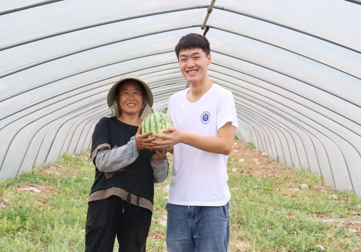 (实践团成员帮助农民摘西瓜)