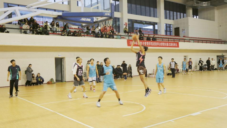 本次决赛的对阵队伍为大四联队与22级经济学队。哨声响起,双方队伍迅速进入状态,球员们在赛场上默契配合、奋勇争先。篮球场上,球员们巧妙运球、精准投篮,每一次进攻与防守都扣人心弦;赛场边,观众们热情高涨,欢呼声、助威声此起彼伏,不断为场上的健儿们注入激昂的动力与无尽的斗志。