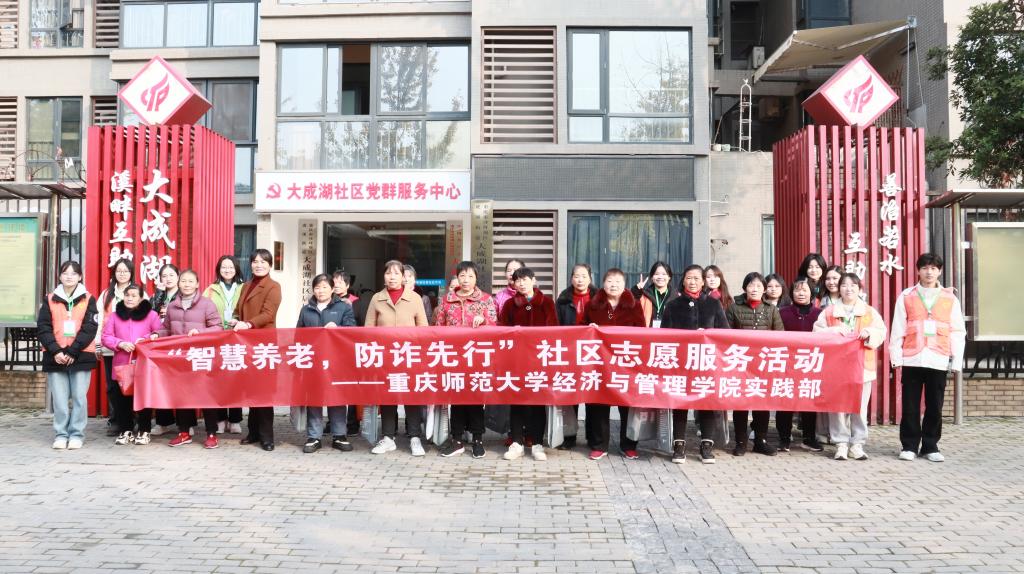 为提高老年群体的防诈识骗意识和自我防范能力,帮助他们掌握正确的防诈反诈手段,更好地适应数字化生活,筑牢反诈“安全线”,守好老年人“养老钱”,11月30日上午,经济与管理学组织大学生志愿者赴重庆市沙坪坝区大成湖社区开展“智慧养老,反诈先行”志愿服务活动。