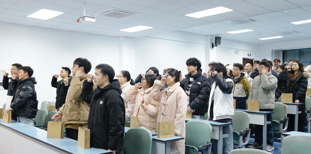 大家庭的温暖和凝聚力。随后唐艺珊带领同学们一起进行考研宣誓,预祝同学们一切顺利,未来可期。