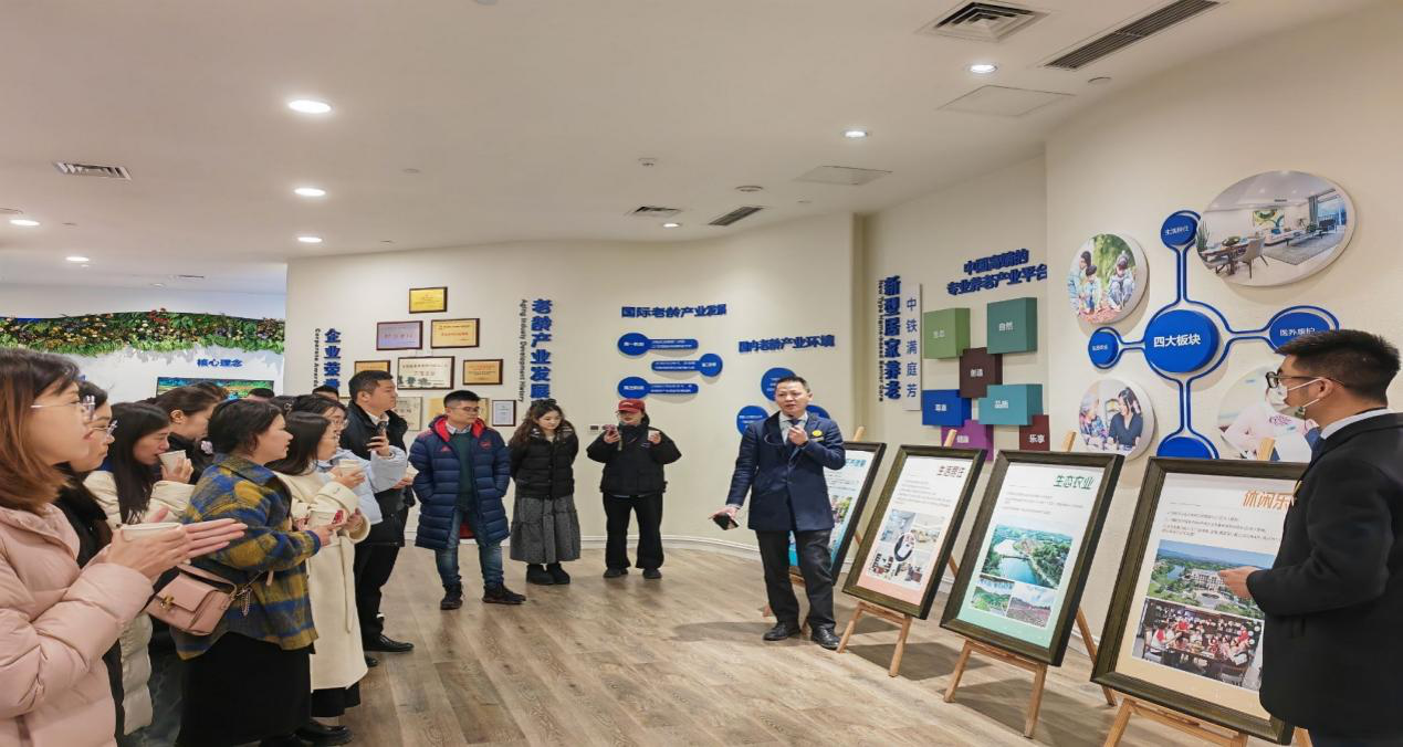12月21日,师生一行前往中铁十局康养公司旗下的中铁满庭芳渝康城项目进行参观调研。中铁康养产业投资运营有限公司是世界500强企业中国中铁股份有限公司的子公司,专注于康养产业,致力于建立“医、养、康、护、乐、旅”六位一体的新型居家养老模式。调研中,项目营销总监杜桂斌向同学们详细介绍了我国银发经济的总体发展趋势,中铁康养公司在大型养老社区建设、智慧养老产品开发、医疗康复等多个业务板块上的布局,多元化养老产业体系和“健康+智慧+生态”的新型居家养老模式,以及本项目社会资本参与、医养结合等内容,为同学们展示了中国养老服务的新业态,使同学们对国家大力发展银发经济、推动智慧健康养老产业发展等有了深刻的认识。
