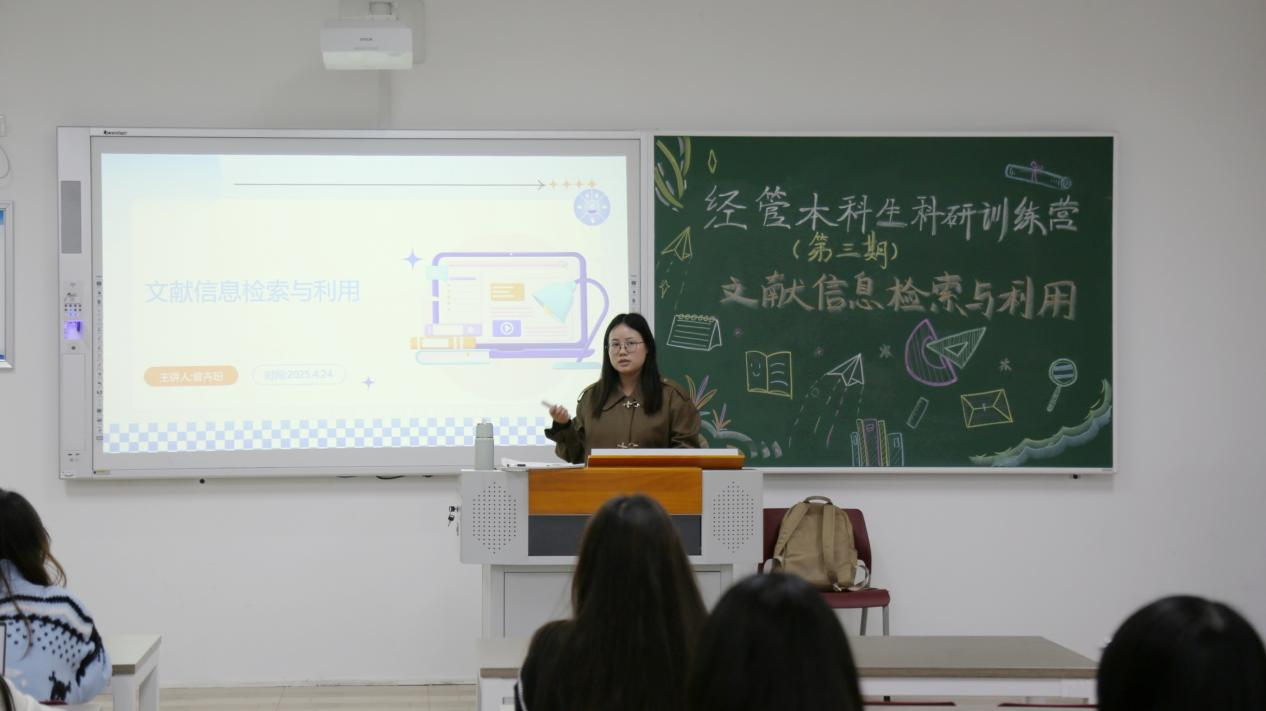 曾卉玢系统讲解了信息检索的核心概念与理论基础,从检索方式、检索目标、信息组织架构三个维度解析不同类型检索的特点,帮助学生构建系统认知。她还重点介绍了基于文献外部特征和内容特征的检索方法,详细演示了布尔逻辑检索、截断检索、限制检索等实用技术的操作要点,并结合经济管理领域的典型案例进行现场实操教学,让抽象的理论知识转化为可操作的实用技能。