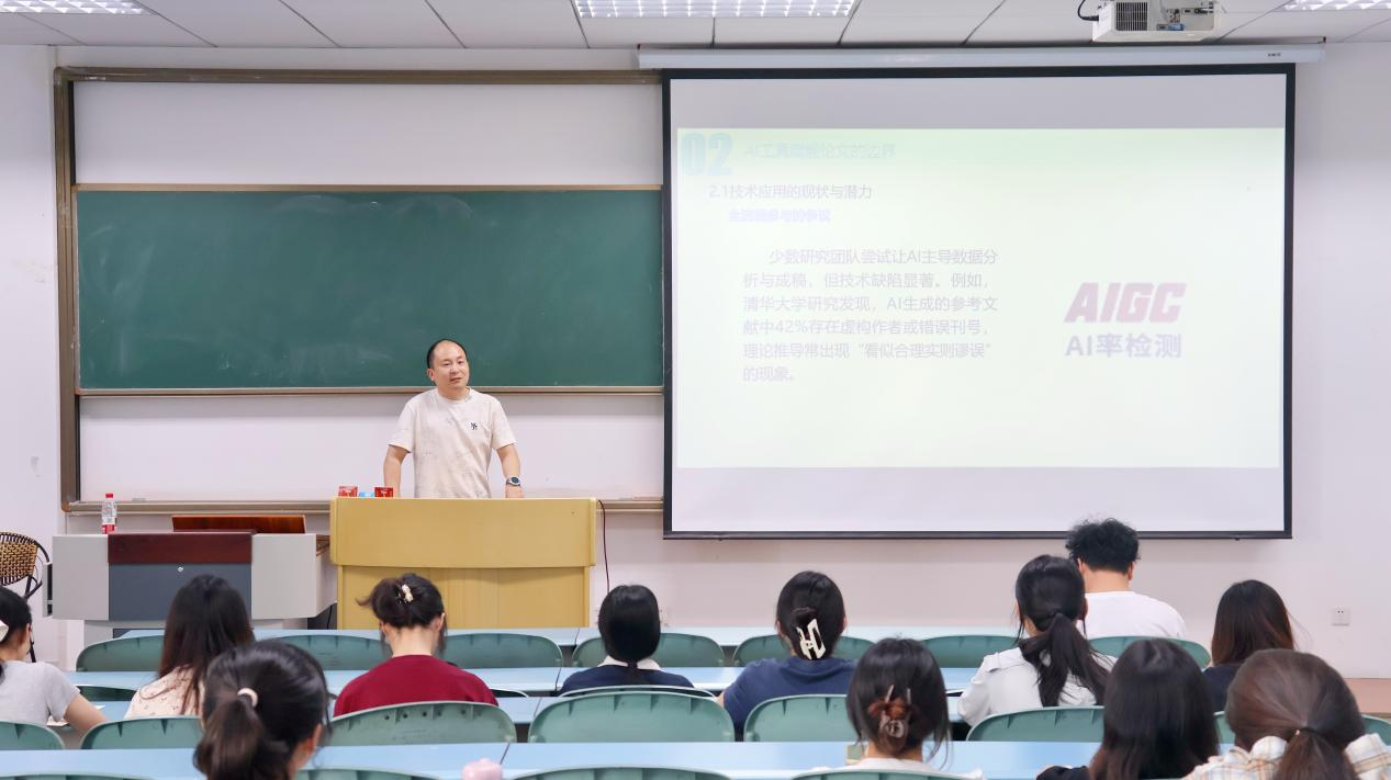 董航航详细介绍了豆包、DeepSeek等常用AI软件及其使用方法,并进一步分析了AI在学术领域的应用现状与空间。同时,他还引导同学们探讨了AI工具使用引发的争议,如原创性与责任归属难题、学术公平与竞争失衡问题等,希望同学们能够在日常学习与工作中,正确运用AI工具,充分发挥其高效赋能论文写作的优势,同时避免陷入滥用或依赖的误区。