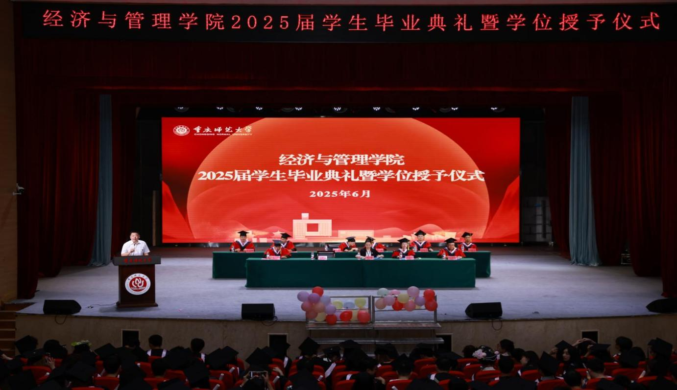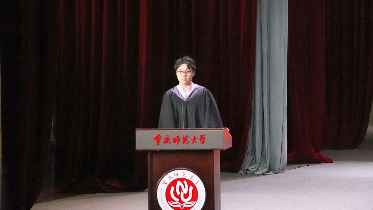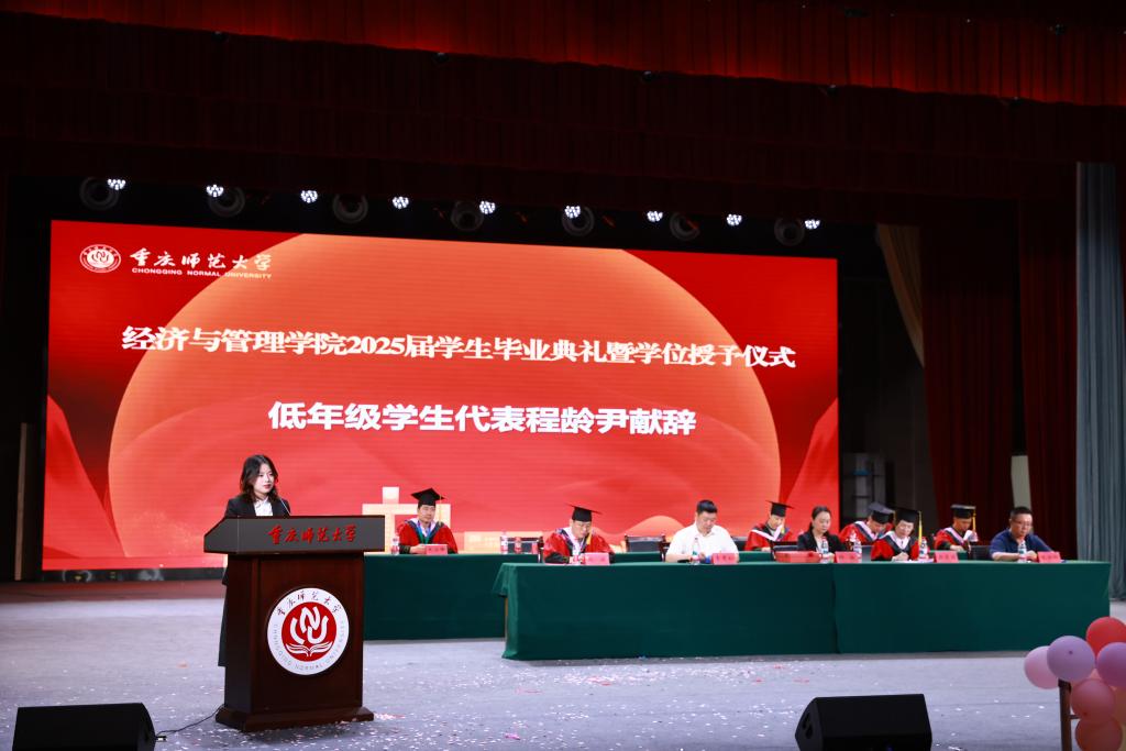 党委书记钟敏宣读了《重庆师范大学关于表彰2025届优秀大学毕业生的决定》,她赞扬优秀毕业生们在学业精进、科研创新、实践服务等方面的卓越表现,向所有受表彰同学致以最热烈的祝贺。这份荣誉,既是对过往拼搏的肯定,更是对明日征程的激励。