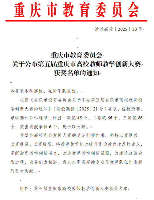 近日,第五届重庆市高校教师教学创新大赛获奖名单揭晓,麻将游戏电脑版
