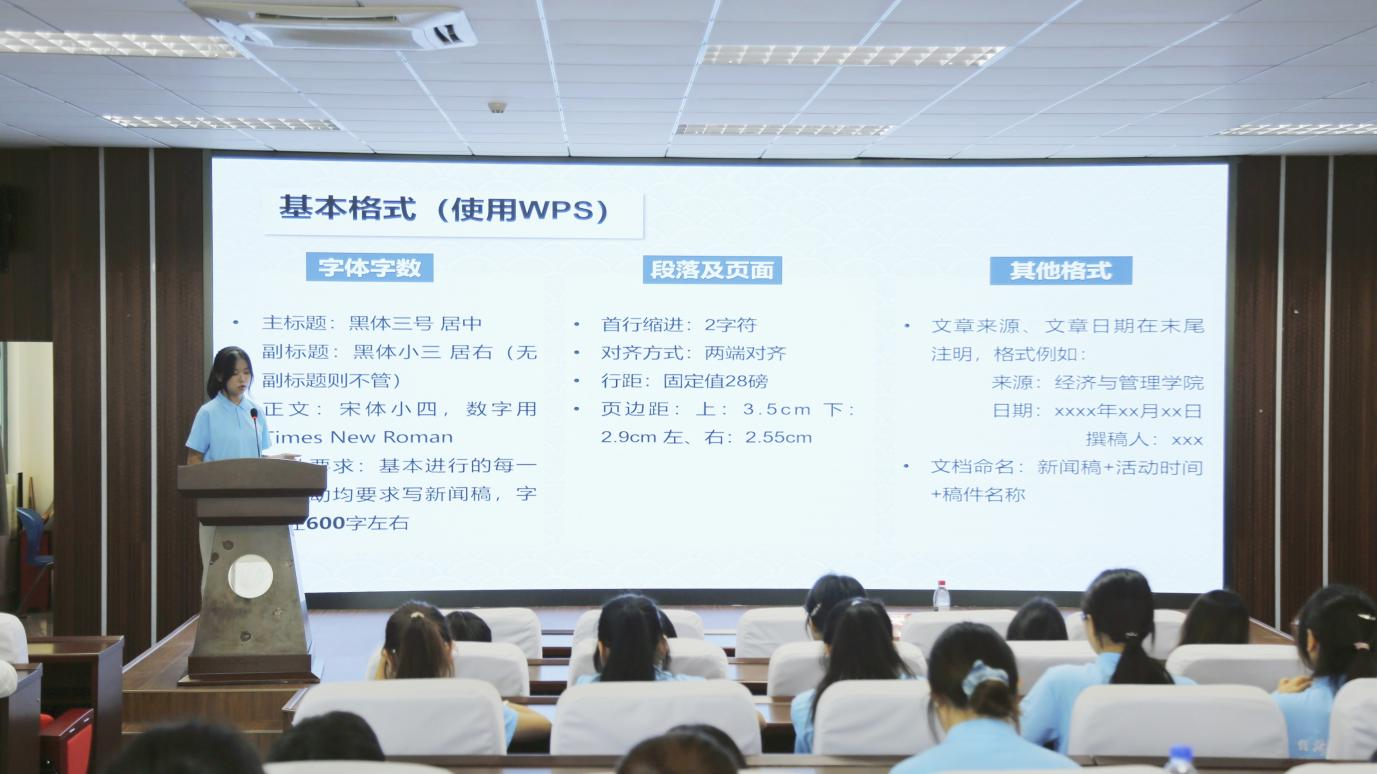 团委学生会学生书记刘诗雨就本次“三下乡”活动的具体流程、任务分工以及预期成果进行了详细部署。新媒体中心负责人毛瑞婷、晏兴利结合实例,分别就实践过程中的新闻稿件撰写与投递、图片拍摄技巧以及视频剪辑要点进行了讲解,为团队宣传工作提供有力支持。