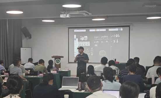 教授、智慧教育研究院副院长黄立新教授为培训班成员带来了题为《deepseek技术赋能教学实践创新》的专题讲座。他现场演示了“pad+投屏器+Explain Everything教学软件”在实际教学过程中的应用,让学员们直观感受到技术融合为传统教学带来的创新活力与课堂授课效果。