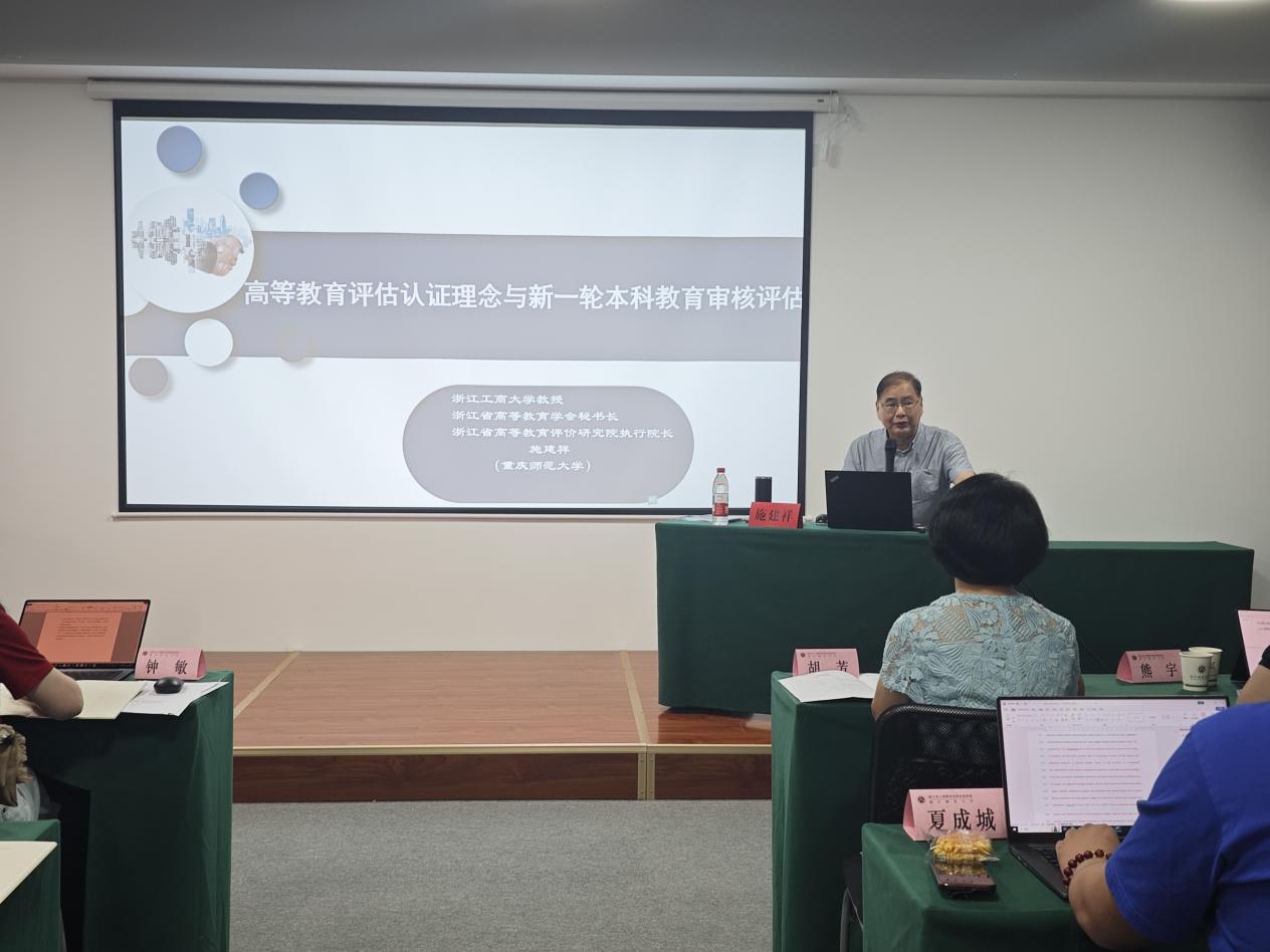 7月14日上午,浙江省高等教育学会秘书长、浙江省高等教育评价研究院执行院长施建祥教授为培训班成员带来了题为《高等教育评估认证理念与新一轮本科教育工作审核评估》的专题讲座。他主要剖析了当前高等教育人才培养面临的主要问题,阐释了高等教育教学评估认证的核心理念与主线,并介绍了新一轮审核评估的指导思想、特色优势及指标体系。