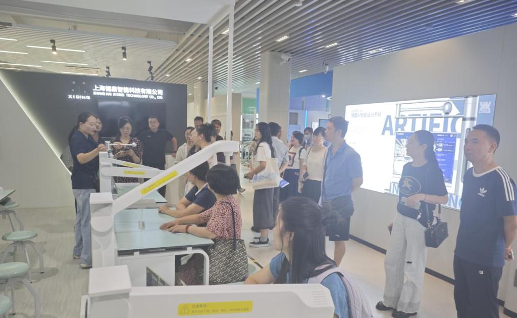 7月16日上午,培训班一行前往浙江数字教育港,近距离体验数字技术赋能教育创新的前沿成果,在负责人的讲解下,体验未来发展教育的新路径。学员们依次参观数字教育港的教育数字化展示中心,这些展示中心汇聚了智慧教研、智慧教学、智慧管理、数据中心四大核心板块,形成了特色鲜明的产业生态。