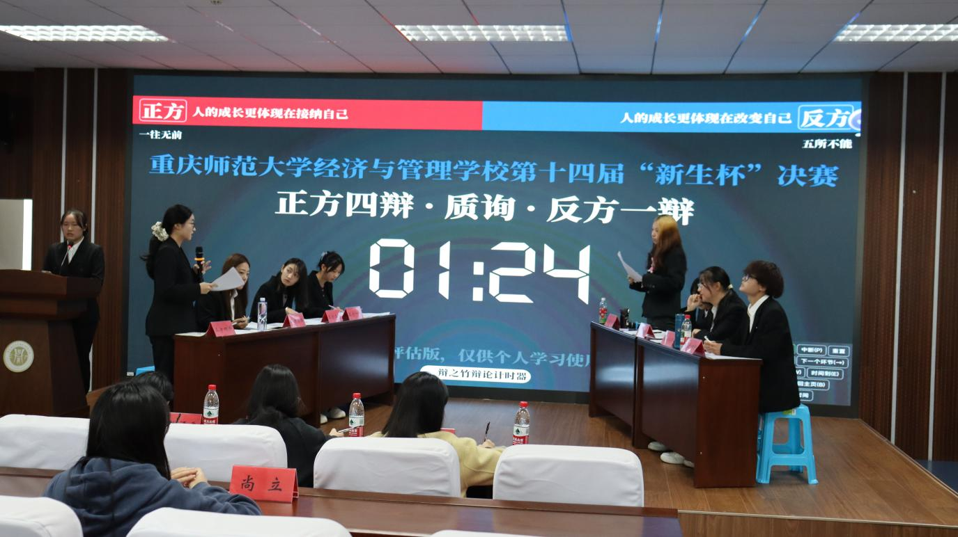 于求是楼517举行第十四届“新生杯”辩论赛决赛。本次活动邀请2025级兼职辅导员尚立担任评委,同时还有三位学生评委共同参与评审,活动吸引了众多学生到场观摩。