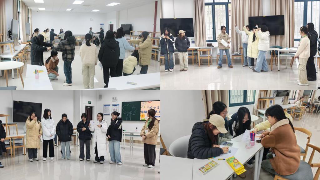 活动现场,形式多样的环节有序开展。“与压力说再见”环节,学生们通过深呼吸、拍打身体等动作放松身心,快速恢复平静。“大树与松鼠”游戏则以轻松趣味的方式,打破同学间的陌生感,增强归属感,转移了对考试焦虑的过度关注。