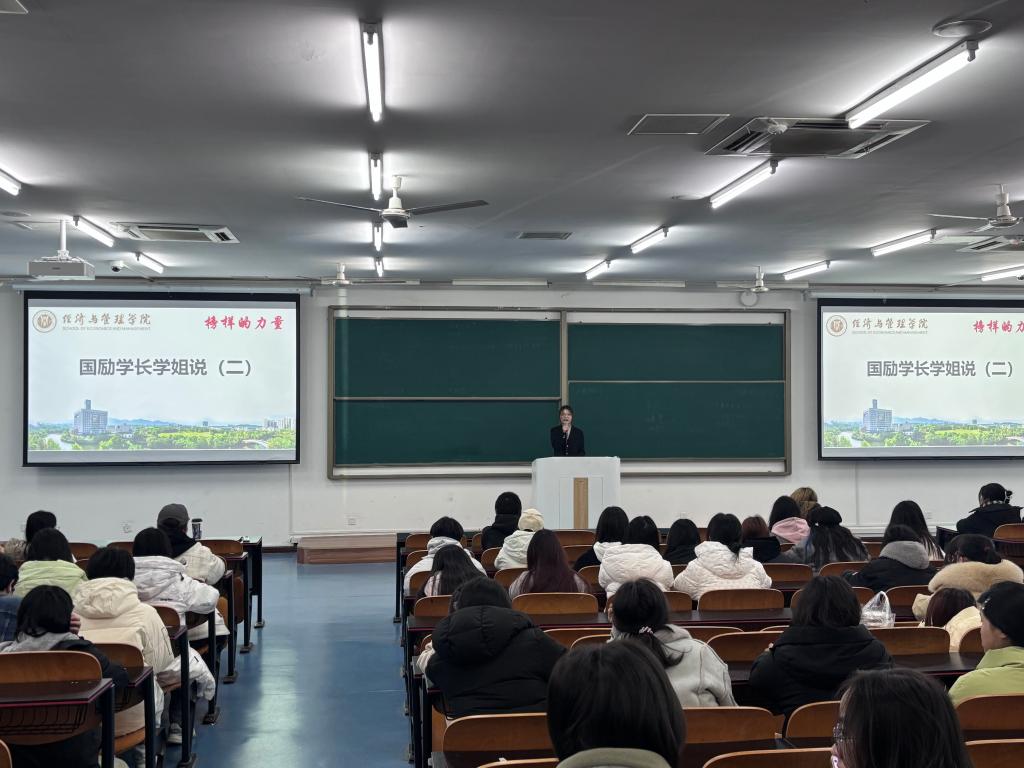 于砺志楼T2507开展国家励志奖学金获得者分享会。本次活动邀请两位励志奖学金获得者代表担任主讲,2025级全体学生参与。