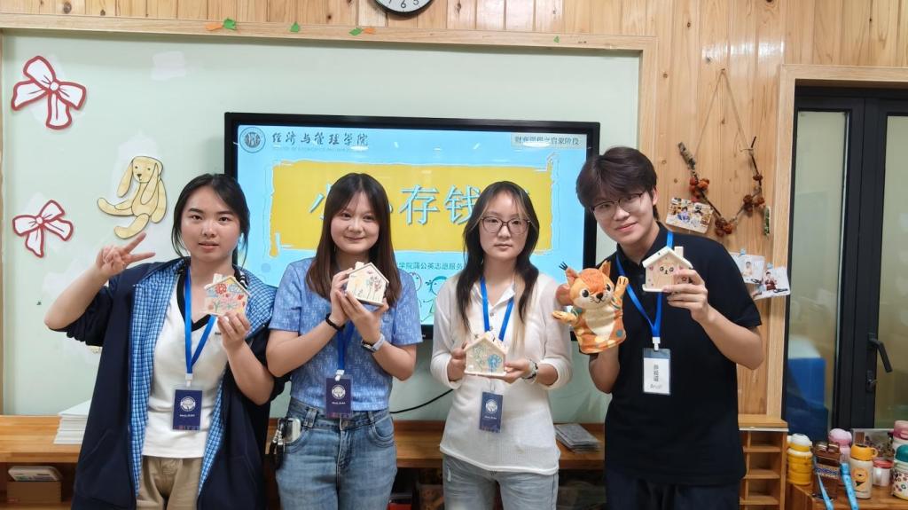 在手工制作环节,志愿者手把手指导孩子们发挥创意绘制存钱罐,互相分享设计灵感。在志愿者的耐心协助下,一个个独一无二的存钱罐逐渐成型,储蓄的种子也在孩子们心中悄然种下。