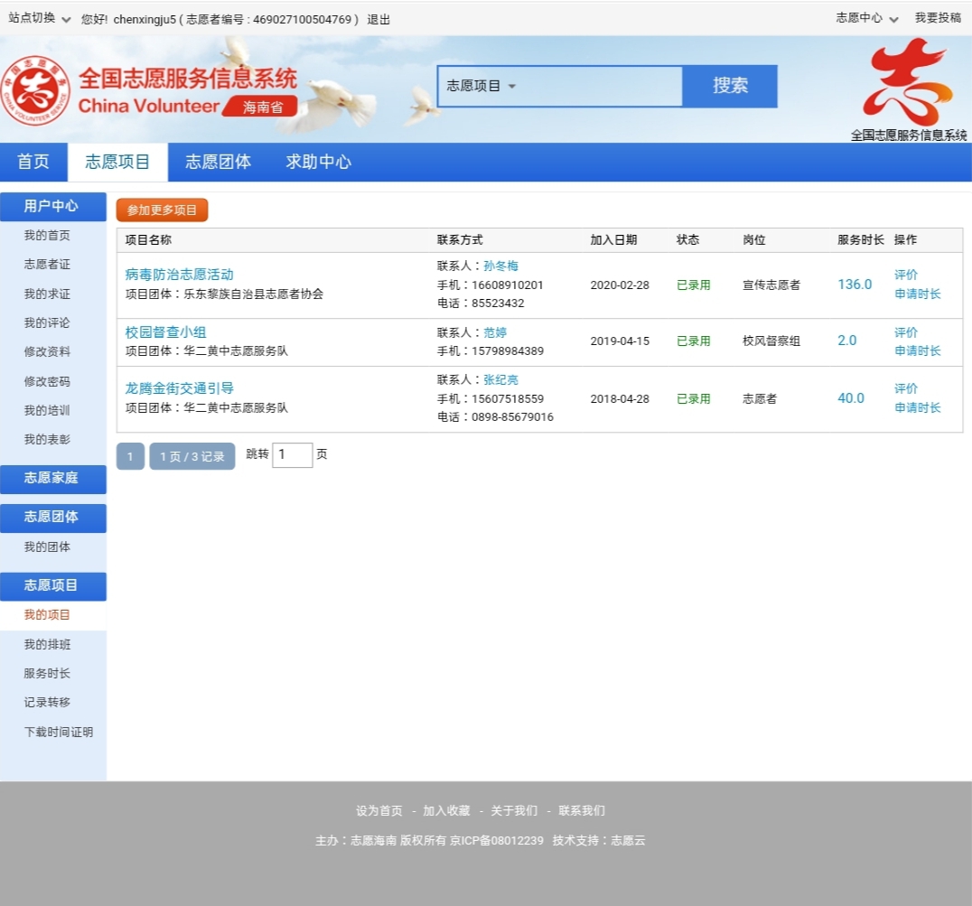 陈兴举同学加入了海南省乐东黎族自治县的抗击新型冠状病毒志愿者的队伍。他主动到村民家中普及防疫知识,发放宣传手册,帮助村民了解新型冠状病毒的危害,强调大家出门要戴好口罩,注意个人卫生习惯。同时,他在防疫点为进出人员测量体温,对外来车辆进行登记。截止目前,他已经在本次防疫工作中志愿服务136个小时。