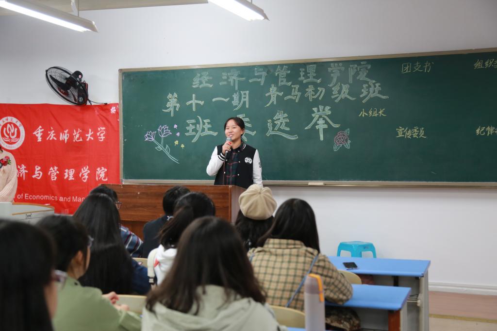 在班主任王啸川、黄倩对各班委职务的讲解之后,竞选仪式正式开始。竞选以青马初级班同学自发上台自我介绍并表明竞选意向,最后通过无记名投票选出新一届青马班班委成员。