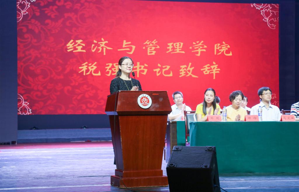 党委书记税强上台致辞。税书记首先向来自四面八方的新同学表示最诚挚的问候和最热烈的欢迎,并希望同学们认真阅读、细细品味“我的大学”,用一辈子的光阴去品尝“我的人生”。税书记还要求同学们在认真学习的基础上提高德行修养来培养健全人格,以艺术书籍熏陶品性品行,用实际行动成就大学生活,学会设身处地为别人着想,并在此基础上建立起独立协调的新的人际关系,并情真意切的寄予同学们做一个敢于好高骛远又善于事实求是的人,成为国家的栋梁之才。本次开学典礼在嘹亮的校歌中圆满结束。