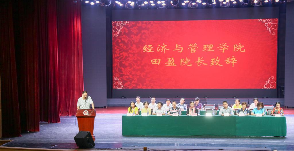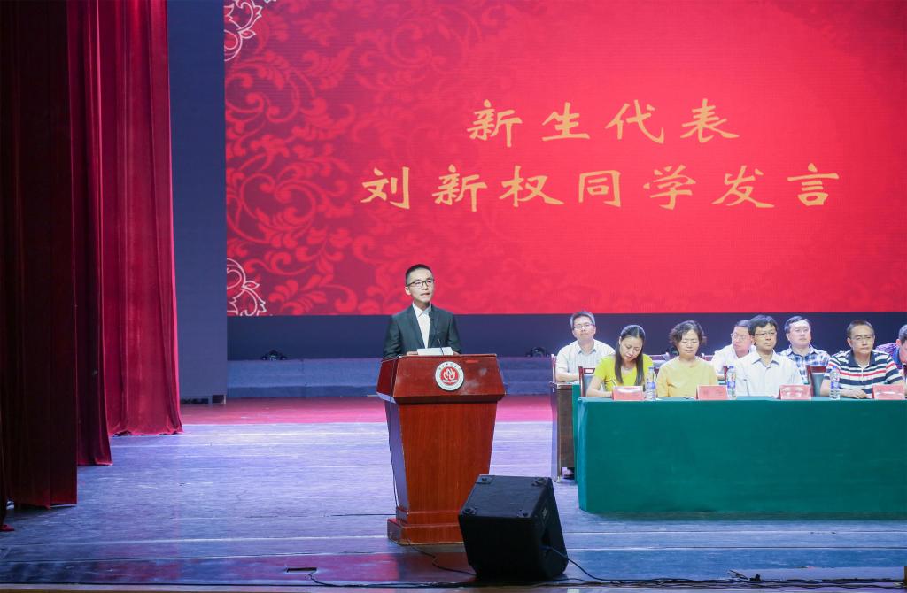 在观看完一组挥洒青春热血,彰显学子本色的军训照片后,开学典礼在庄严的国歌声中拉开序幕。田盈教授首先对2016级新生们的到来表示热烈欢迎,并对他们提出以下几点要求:一、不忘初心,方得始终,百炼成钢,九死不悔;二、合理规划时间,以学为重,捕捉灵感;三、要有期待,无懈怠,持之以恒。“‘态度决定成败’,在大学生活中要端正态度,做到学有所得,得有所用”是田盈教授对同学们的谆谆教导。紧接着,我校优秀教师代表邹燕在对新同学的到来表示热烈欢迎的同时也表示自己将在今后的生活中继续传承师道,厚德育人。新生代表刘新权展望大学生活,鼓励拼搏进取;高年级学生代表刘安琪同学也屡送真言,交流学习经验与心得。