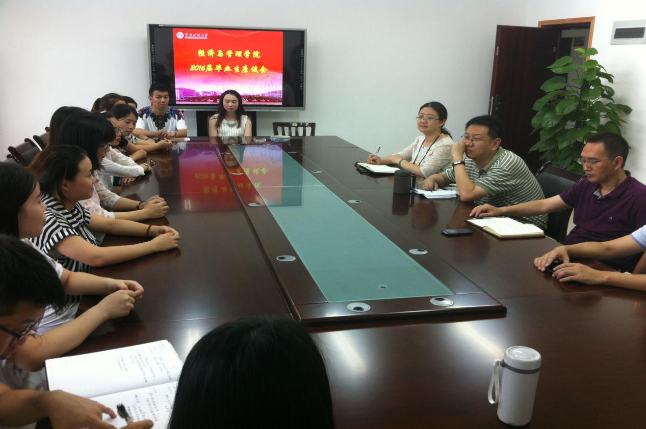 楼311会议室召开2016届毕业生代表座谈会。院长田盈、党委书记税强、副书记任源钢、副院长陈道平及各系主任出席会议,座谈会邀请经济管理麻将游戏电脑版