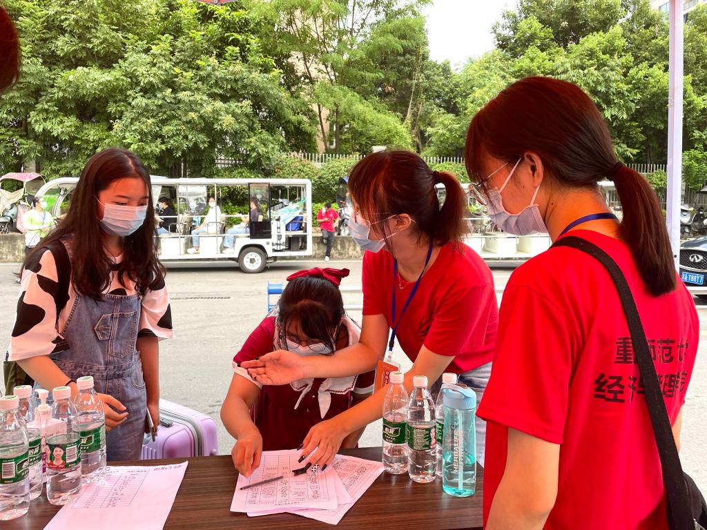 非渝籍新生报到工作顺利进行。同日,非渝籍新生已全部完成核酸检测,牢筑校园安全墙。截止到下午18:00,已报到本科生共计372人,其中经济学99人、工商管理类273人;已报到研究生共计300人,其中学硕41人、职业技术教育10人、农业管理152人、MBA97人。