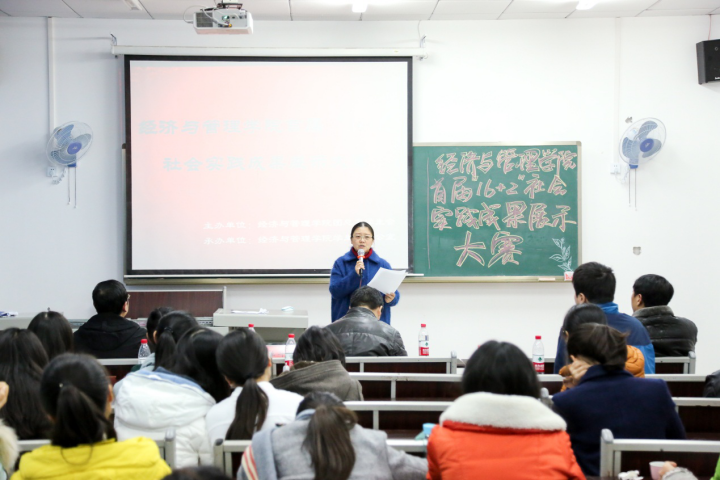 展示竞赛正式开始前,陈道平副院长对本学年“16+2”教学实践活动给予充分肯定,并希望同学们在实践期间不断完善自我,发展自我。比赛过程中,参赛选手自信大方、侃侃而谈。“未来,我一定会考研”,来自2015级经济学的参赛选手张兴建在对自身就业与考研的真实调研分析与社会报告基础之上,提出以上结论,并准确地定位自身发展方向和人生未来目标。针对现今企业发展方向与整体态势,2016级工商管理参赛选手向月森提出,在进入企业认知时,要做的是关注当下经济形势带给该企业的机遇与挑战,并以嘉陵集团为例,深入剖析了其产品的市场定位与发展战略。各位选手踌躇满志,认真专注的眼神透露着他们对社会实践的深刻感知与对将来发展的美好愿景,出色的表现不断博得在场评委、观众的阵阵掌声。