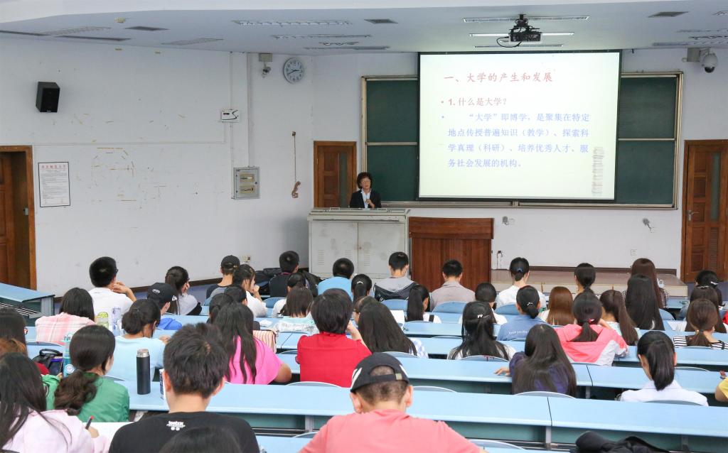 学子“做人应知温良恭俭让,做事应明礼义廉耻信,做学问更应对自己高标准、严要求。只有做到如此,才不失重师学子之风范,才彰显重师学子之本色”。最后,邓老师引用朱熹名言鼓励同学们“宝剑锋从磨砺出”的为学之道,并预祝同学们能够愉快的度过值得骄傲的大学生活。