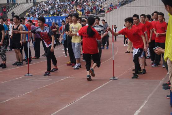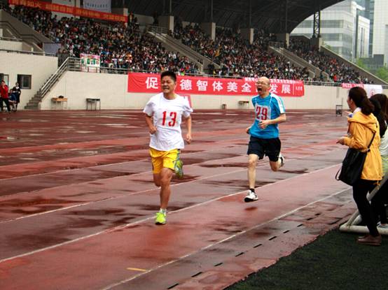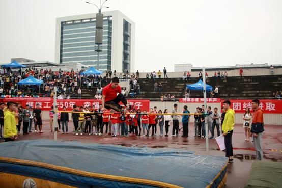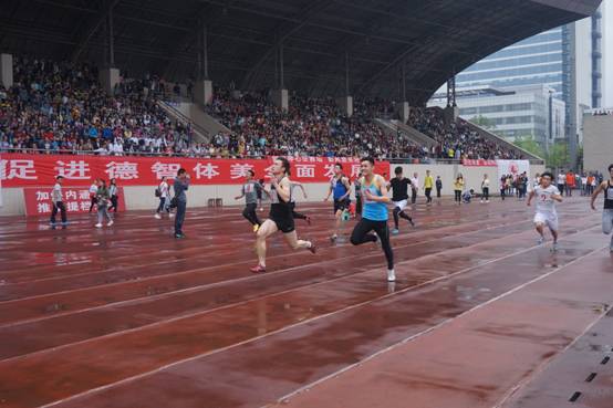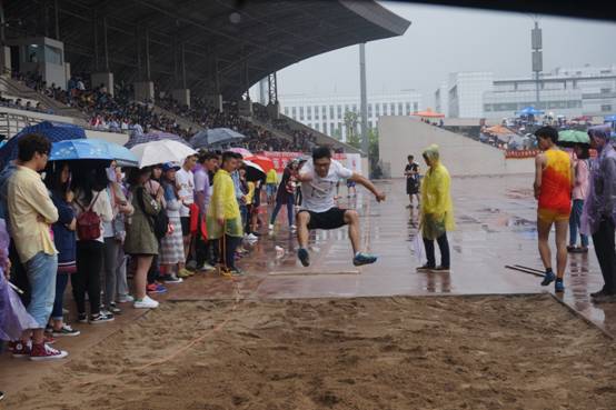 人心中奋发拼搏的热血。同时,赛场上随处可见身着院服的志愿者们奔跑着、忙碌着,在雨中独成一道亮丽的风景。