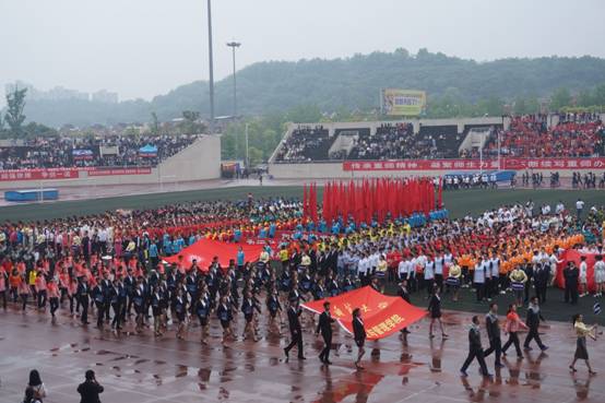 迎着风雨不退缩,踏着节拍青春火,4月14日上午8点半,重庆师范大学第五十一届春季田径运动会在重庆师范大学大学城校区运动场隆重开幕。