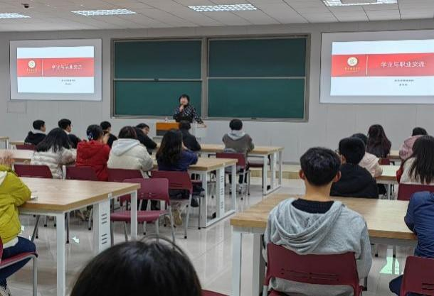工商管理系夏德建博士在求是楼131围绕专业发展前景、专业学习方法、国考与公招等问题,从专业优势的视角,深入分析了工商管理类专业的就业前景,鼓励学生努力进取,筑梦未来,夏博士的宣讲激发了学生浓厚兴趣,会后久久不愿离场。财务管理系尹亚华博士在求是楼133从专业与就业联系、选择与努力关系、格局与境界选择三个维度,用专业的知识与眼光,激情澎湃地为学生进行了学业规划指导,系主任张保帅教授和何清老师对学生重点关注的问题进行了一一解答。