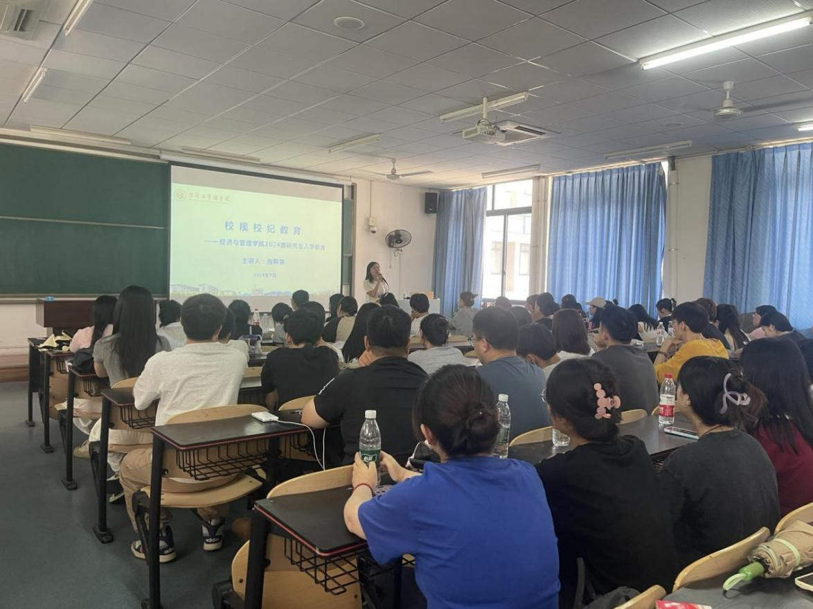 副院长陈宇科教授,教学秘书吴云老师,辅导员向薪蓉、王雪薇老师为全体2024级硕士研究生开展专题讲座。