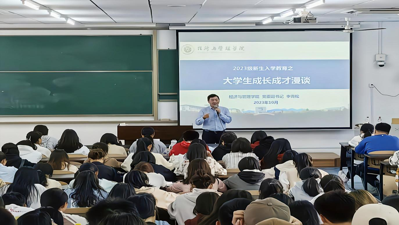 党委副书记李青松为23级新生进行成长成才新生教育辅导。