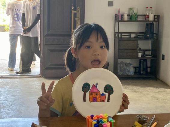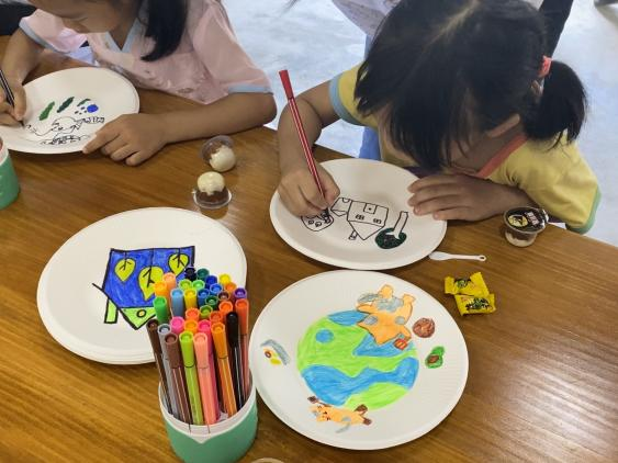 纸盘绘画中,小朋友们充分发挥自己的想象力,用手中的画笔描绘自己心目中的绿色环境。一笔一画,载笑载言,将护绿的童心付诸于纸端,共绘心中绿色家园蓝图。通过“小院课堂”“少儿低碳绘画”等形式,多层次、多举措倡导村民做绿色低碳生活方式的践行者。