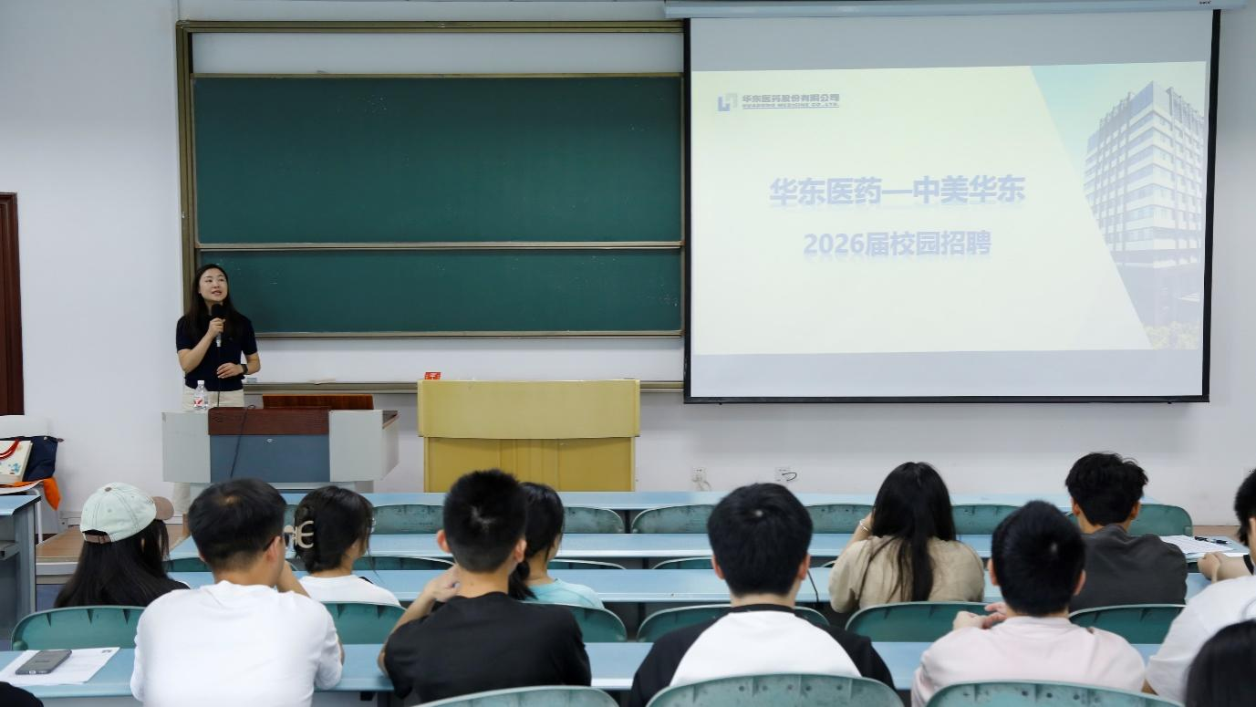 于求是楼421开展杭州中美华东制药有限公司2026届实习招聘宣讲会。本次宣讲会由杭州中美华东制药有限公司人力资源经理龙秋伶主讲,近40名毕业生参会。