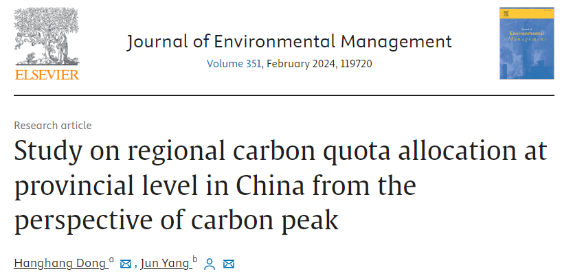 经济学系董航航博士撰写的论文Study on regional carbon quota allocation at provincial level in China from the perspective of carbon peak在Journal of Environmental Management公开发表。