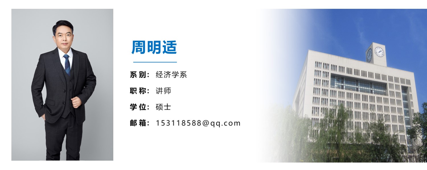 周明适,男,汉族,讲师,省部级“精品资源共享课”《金融学》的主要成员。主要从事风险管理和证券投资方面的教学和研究。主讲《证券投资学》、《风险管理》、《国际经济学》、《经济思想史》等课程。