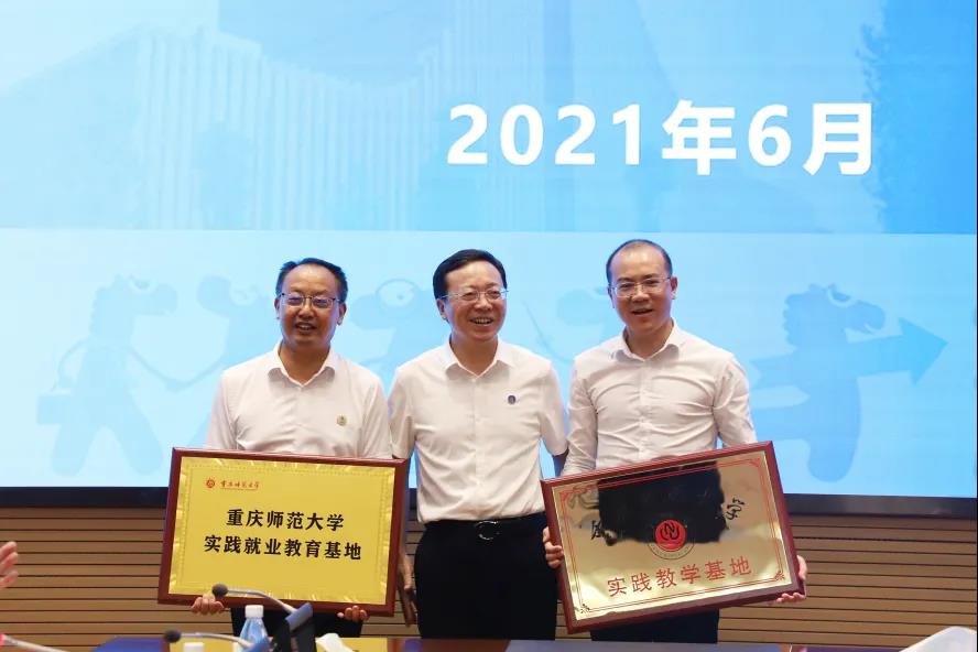 孟小军副校长向重庆产业园授牌“重庆师范大学实践就业教育基地”“实践教学基地” |
