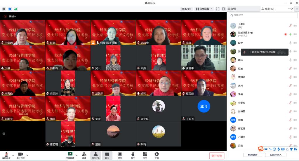 通过线上会议召开2022年度党支部述职评议考核会。会议由院党委书记钟敏主持,党委委员、纪委委员、党支部书记、组织员参加了述职评议考核会。