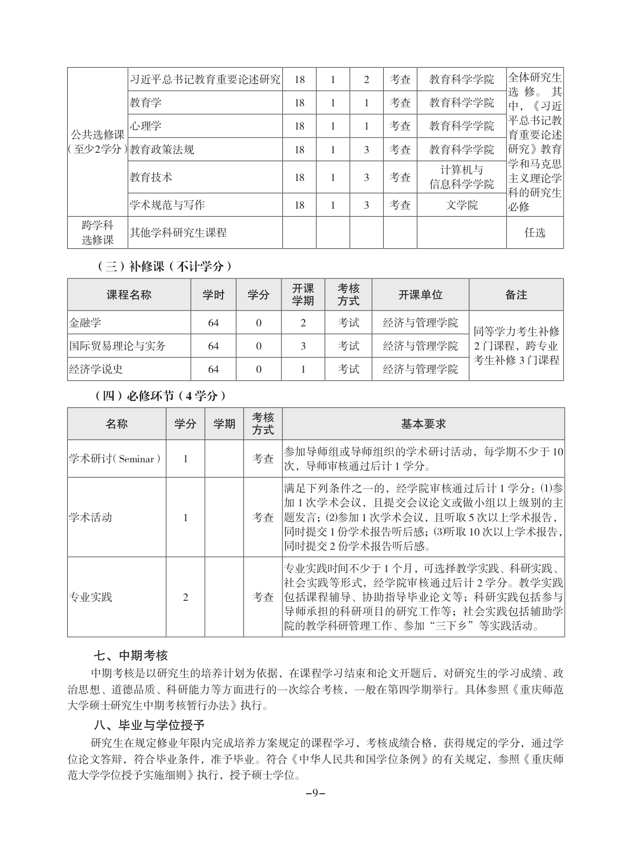 重庆师范大学学术型硕士研究生培养方案