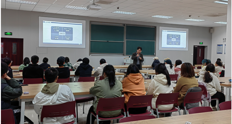 金融工程系主任王珏副教授以自身学习和工作经历为例,指导学生如何选择自己的人生赛道,并展示了怎样使用和借助中国知网,ChatGPT等工具获取知识和提升自我,介绍金融工程专业相关学科竞赛,分享学生时期参加重要比赛的意义,阐述“以赛促学”的方法。