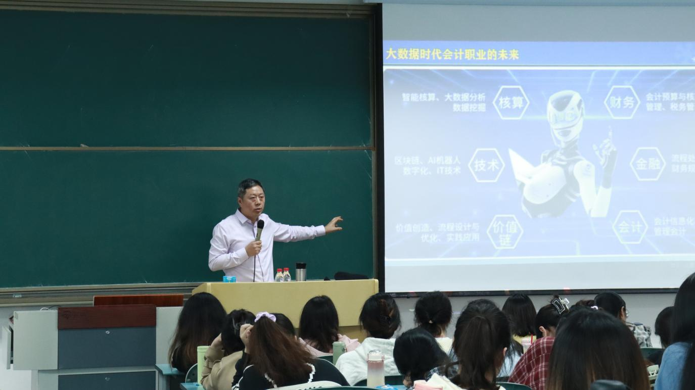 在探讨大数据时代会计职业的未来发展时,张诗宇先生提出了“始于核算,终于业务”的财务工作基本逻辑,并深入分析了会计职业面临的新机遇与挑战。他鼓励学生们在专业学习的同时,注重个人素养的提升,为未来的职业生涯做好充分准备。