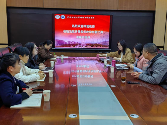 对林营教授的莅临表示热烈欢迎与衷心感谢。他强调,教学创新大赛是推动课堂创新实践、促进教师专业成长的重要平台。他鼓励与会教师珍惜此次与国赛名师深入交流机会,主动请教、充分吸收其宝贵经验与前沿理念。通过专家的“靶向”指导,切实把握大赛要求与备赛核心,将所学所悟转化为实际行动,真正实现以赛促教、以赛促学、以赛促成长。