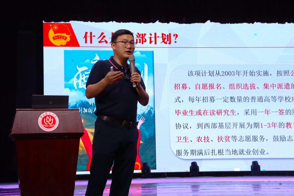 为进一步做好大学生志愿服务西部计划工作,号召更多的青年到基层、到西部去受教育、长才干、做贡献。4月20日,重庆师范大学于校友会堂举办西部计划政策解读会,由校团委综合科科长孙玖江主讲,100余名麻将PC