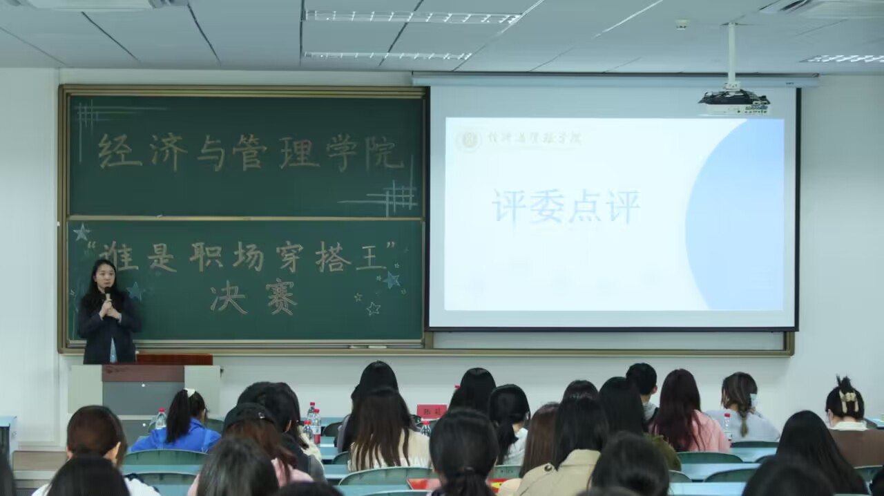 比赛结束后,张莉老师对此次活动进行总结与点评。她肯定了此次比赛对提升大学生职场穿搭审美能力与职业能力的意义,对同学们积极参与此次比赛表示感谢,同时鼓励同学们去积极的了解职场穿搭,并敢于借鉴、敢于穿搭,最终形成自己的职场穿搭风格。