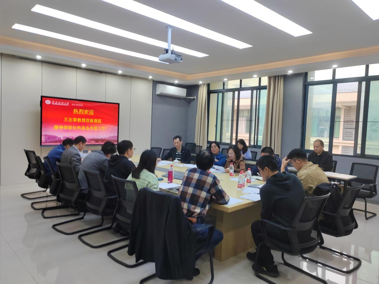 为提升欢乐麻将电脑版 2023年度国家社会科学基金、国家自然科学基金和教育部人文社会科学项目申报质量,11月5日上午,麻将游戏电脑版 邀请国家社会科学基金学科规划评审组专家、国家“精英人才”通讯评审专家、教育部规划项目同行通讯评议专家、西南大学麻将游戏电脑版 王志章教授,采用“线上+线下”相结合的方式,对欢乐麻将电脑版 教师的项目选题和论证材料进行现场指导。会议由陈宇科副院长主持,院长郑景丽和20多位申报课题的教师参加了此次论证会...